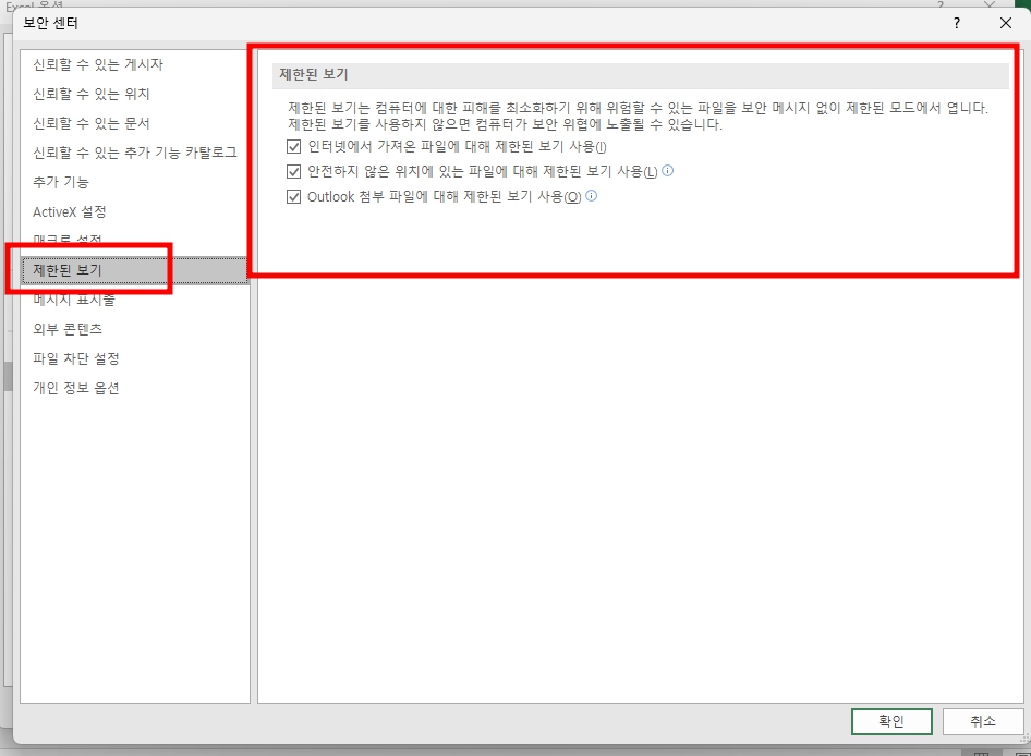 제한된 보기 --> 체크되어있는 것을 풀어줍니다.